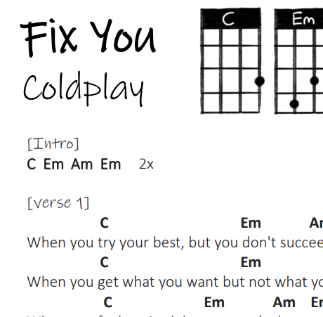 Lead sheet: Fix you - Coldplay (ukulele)